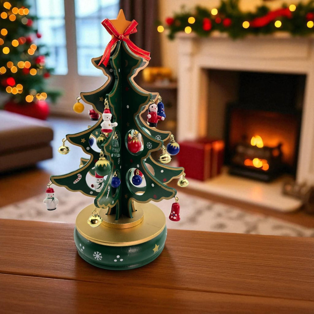 Ялинка дерев'яна музична настільна з міні-іграшками (27×15×15 см)